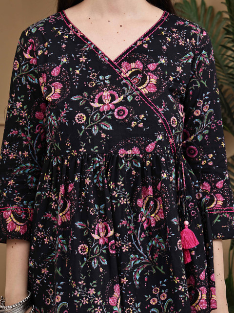 - Black and pink regular wrap top