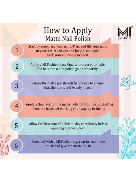 | How-to-Apply | Twist the cap and remove the excess product while removing the brush out Place the brush on the centre part of the nail just below the cuticle and drag belowRepeat process on both sides of the centre line, leaving no empty spots on the nailOnce dried, apply another coat if needed |