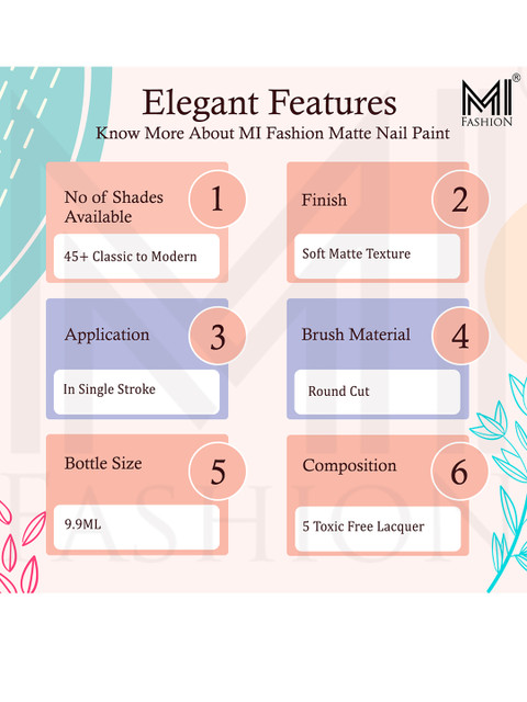 MI FASHION Set Of Velvet Matte Long Lasting Nail Polish – 9.9ml Each