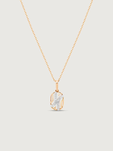14KT yellow gold radiant flow pendant, has a crisscross base with diamond studded detail