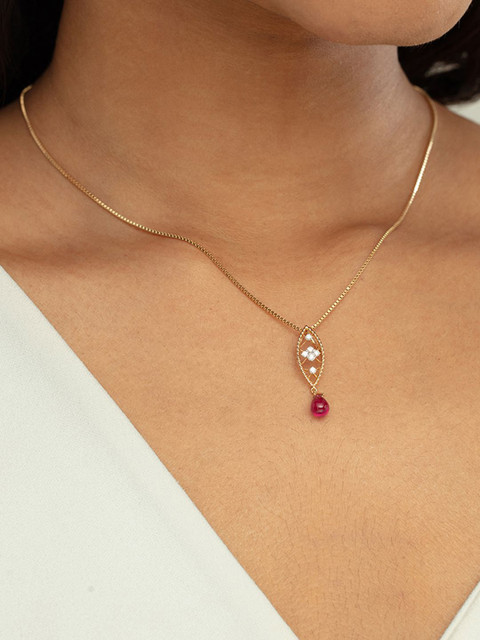 Mia by Tanishq Women 14KT Yellow Gold Ruby & Diamond Pendant