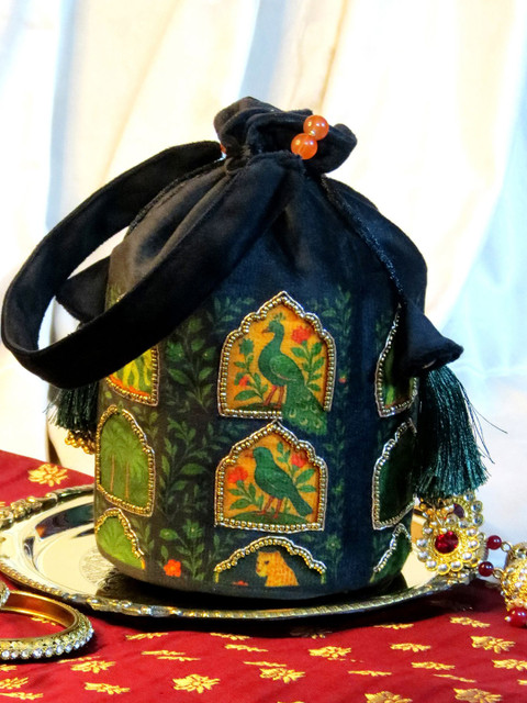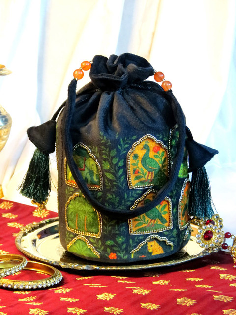 Black and green embellished potli clutches