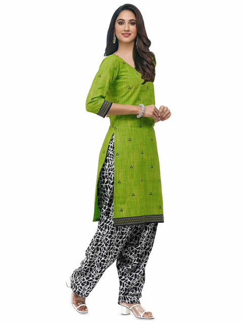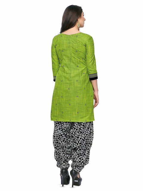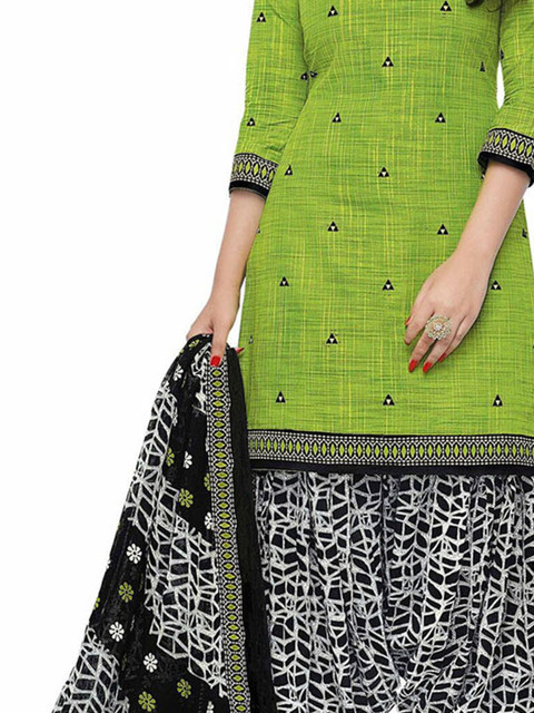 Green and black printed unstitched dress material