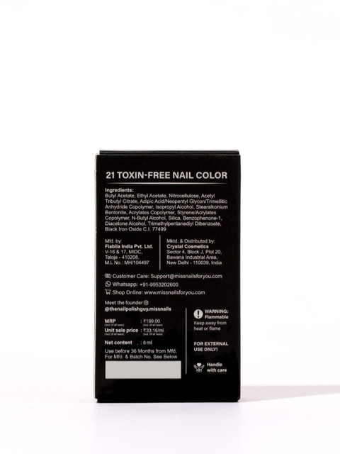 | Ingredients | Nitrocellulose, Adipic acid/Neopentyl Glycol/Trimellitic Copolymer, Styrene/Acrylates Copolymer, Acrylates Copolymer |