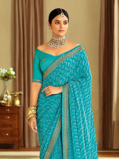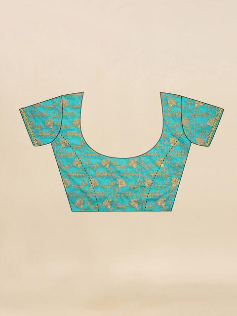 The blouse worn by the model might be for modelling purpose only. Check the image of the blouse piece to understand how the actual blouse piece looks like.