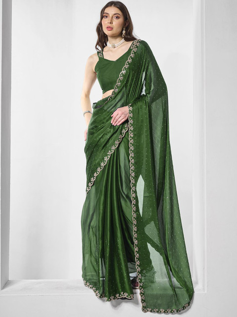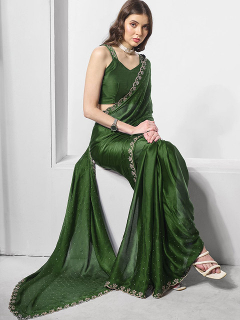Very beautiful saree in dark mehndi color.