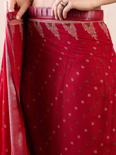 The blouse worn by the model might be for modelling purpose only. Check the image of the blouse piece to understand how the actual blouse piece looks like.