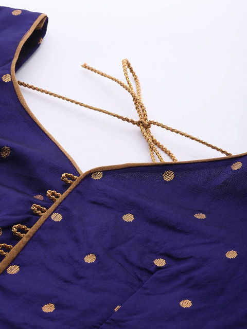 Navy blue and golden kalamkari woven design unstitched blouse fabric