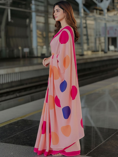 - Polka Dot Printed saree with Solid Border border