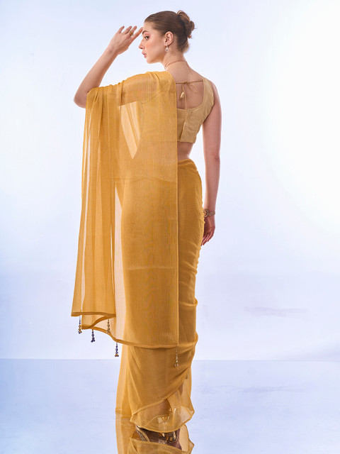 The blouse worn by the model might be for modelling purpose only. Check the image of the blouse piece to understand how the actual blouse piece looks like.