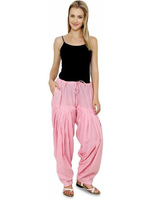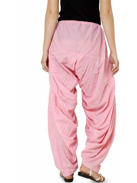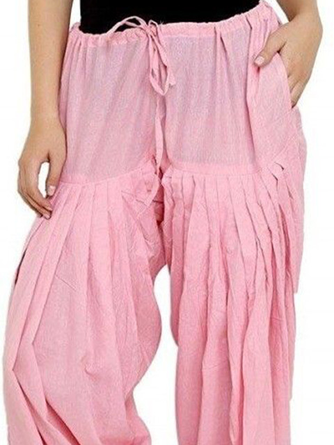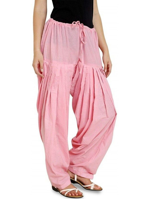 Pink solid loose fit salwar has a waistband with drawstring closure