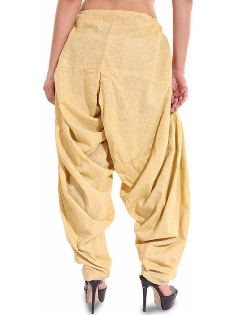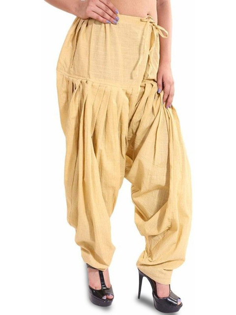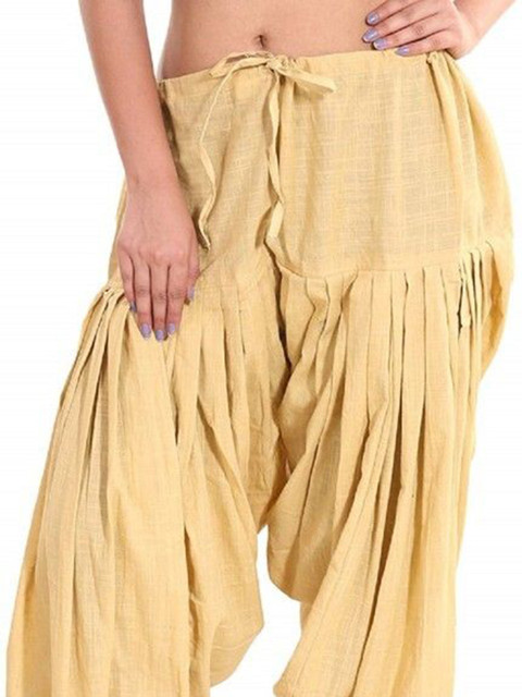 Beige solid loose fit salwar has a waistband with drawstring closure