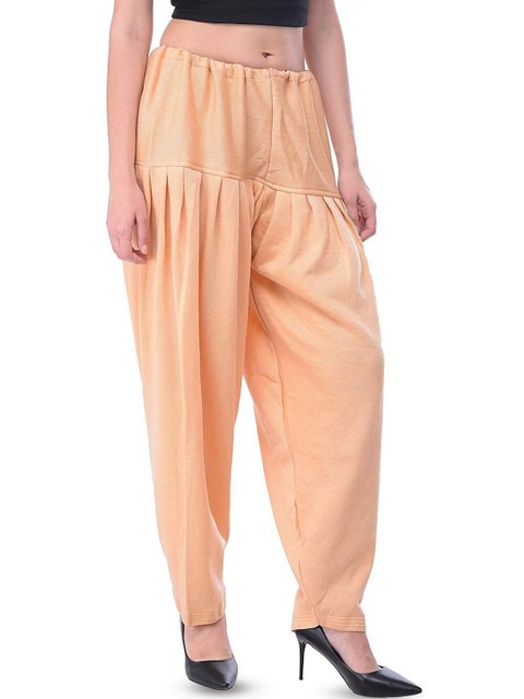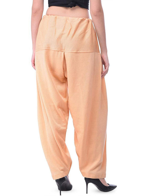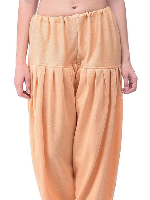 Beige solid loose fit salwar has a waistband with drawstring closure