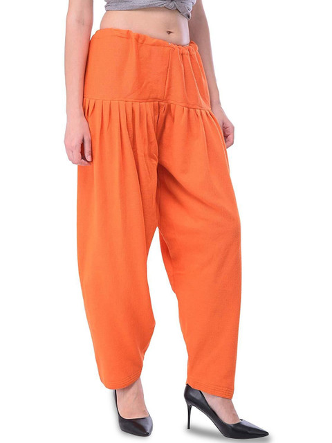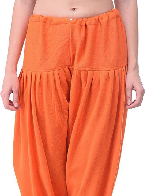 Orange solid loose fit salwar has a waistband with slip-on closure