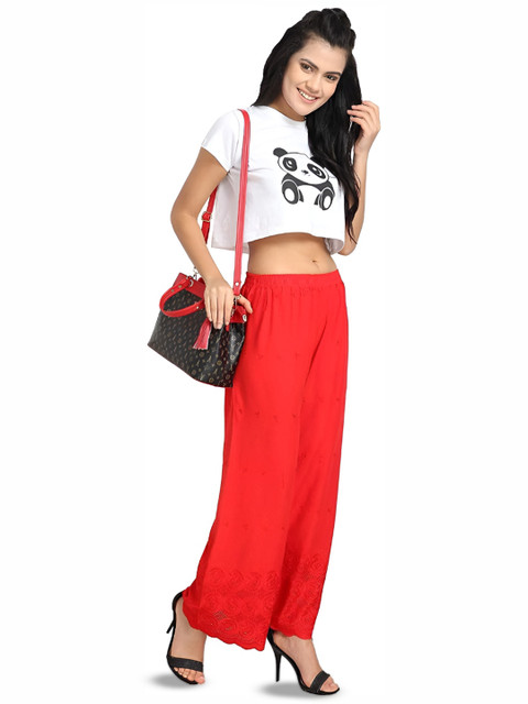 MIXFIT Women Pack of 2 Embroidered Straight Fit Palazzos