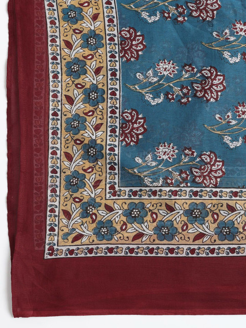 Maroon & Blue Solid Kurta with Trousers & Dupatta