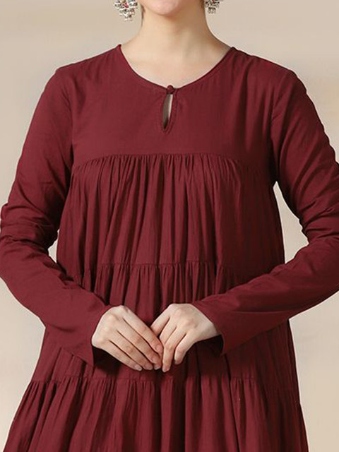 Trendy tiered kurta set in solid with a printed dupatta , multi wear the top can be worn as a dress too with a belt. Fits well & fabric is soft. Love the churidar sleeves, took me bk to the 90s when it was a crazzy trend. Good buy & value for money