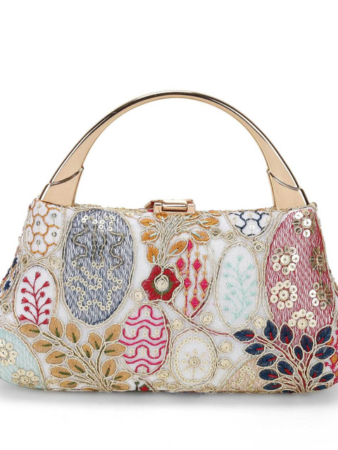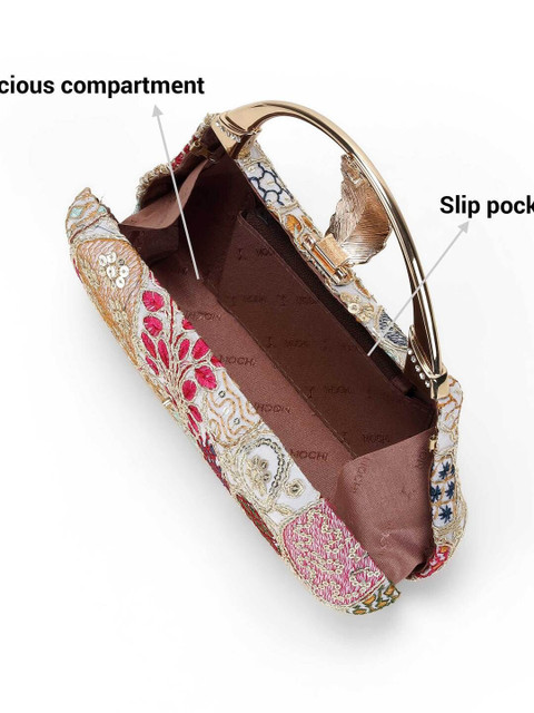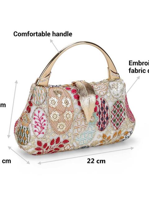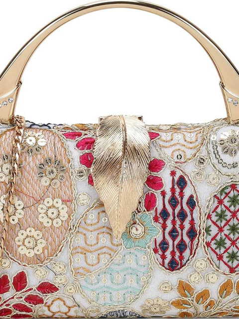 Gold-toned and red printed box clutches