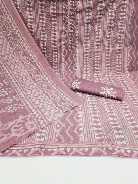 Purple printed unstitched dress material