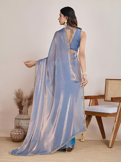 This saree is crafted from luxurious Zimmy Choo Fandy fabric and features a beautiful two-tone shaded design, with a hand-worked lace border for added elegance. The saree measures 5.5 meters in length, and the blouse piece is 0.8 meters, unstitched, so you can customize it to your preferred style. The blouse is made from solid Banglori fabric, offering a classic look. This saree is perfect for festivals, parties, weddings, and any special event where you want to stand out in style. It’s comfortable, stylish, and designed to make every woman feel confident and elegant.