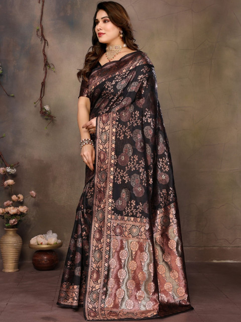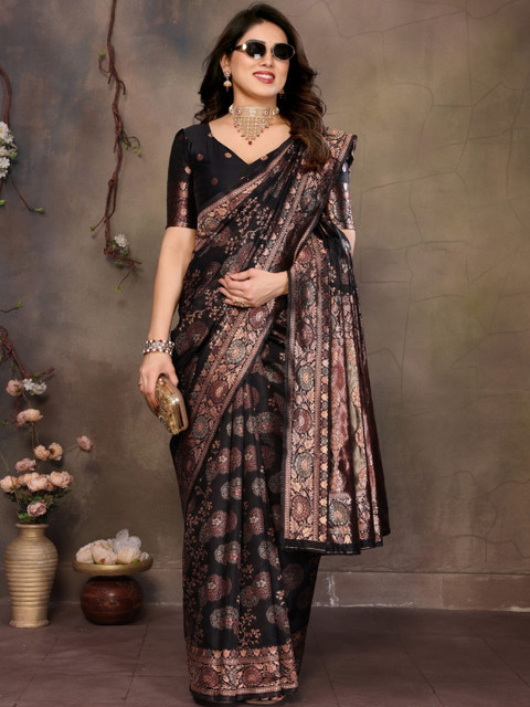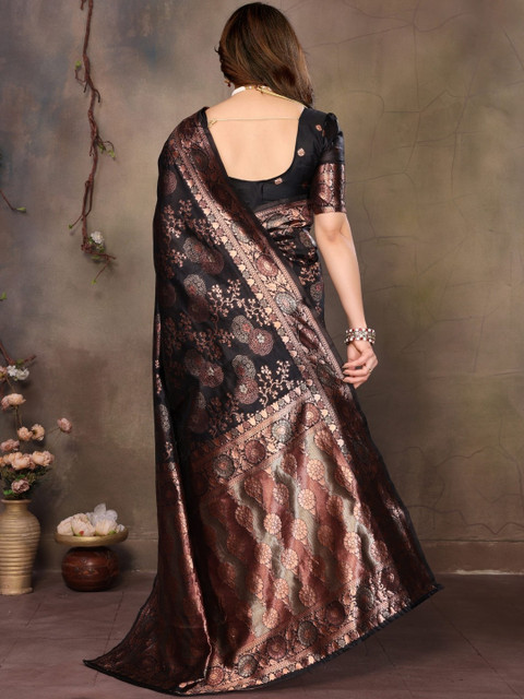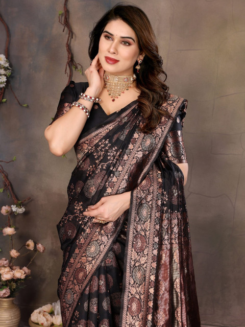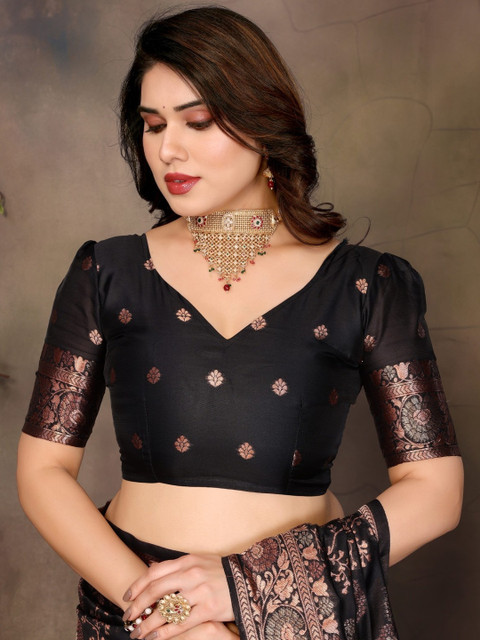 Saree Fabric:- Banrasi Silk || Blouse Fabric:- Banarasi Silk || Color:- BlackSaree – 5.5 Mtr | Blouse – 0.8 Mtr Unstitched Blouse Piece. (Which Can Be Stitched According To Your Comfort, Style & Fashion)Pattern:- Jacquard Weaving Pattern || Design:- Flower Zari Woven Kanjeevaram Style With 2 Colours Zari