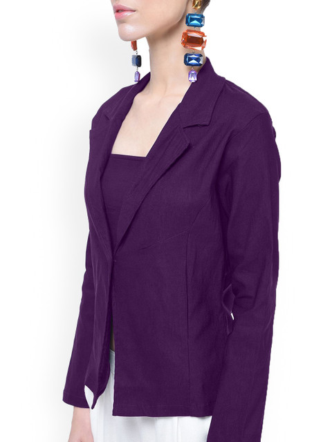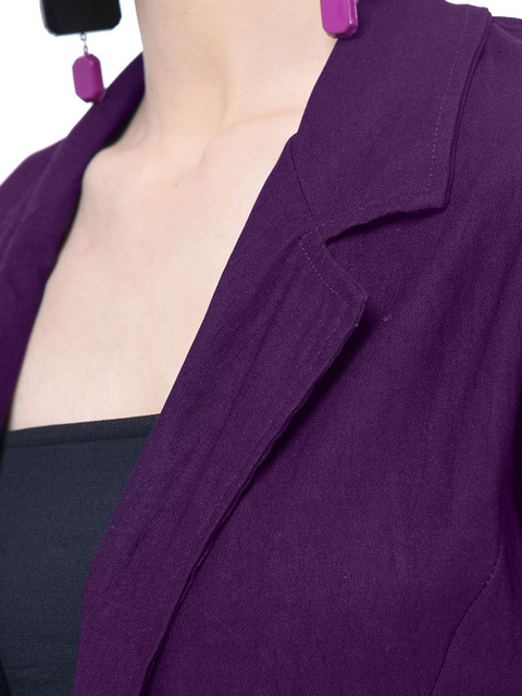 Purple solid regular-fit casual blazer, has a notched lapel, long sleeves, single-breasted with single button closure and a ventless back hem