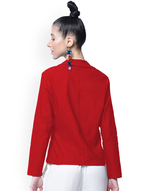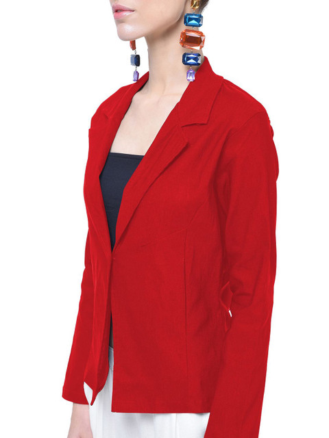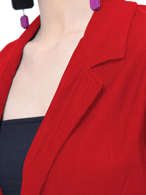 Red solid regular-fit casual blazer, has a notched lapel, long sleeves, single-breasted with single button closure and a ventless back hem