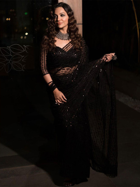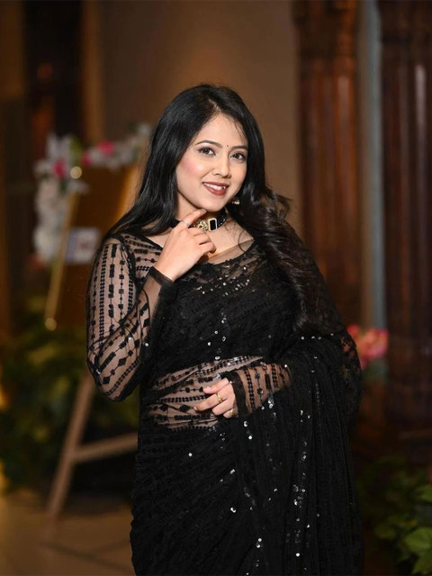Saree Fabric: Georgette, Blouse Fabric: Art SilkSaree Work: Exquisite Embroidery and Diamond SequinsSaree Length: 5.5 Meters || Blouse Length: 0.8 Meters