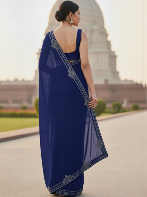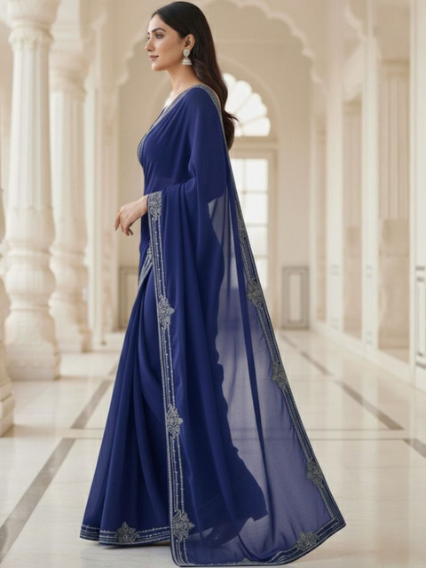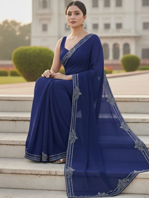 Moda Rapido Ethnic Motifs Embroidered Embellished Saree with Unstitched Blouse Piece