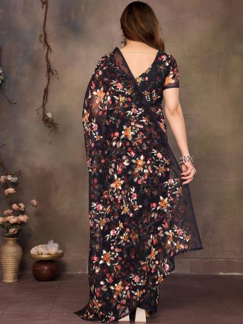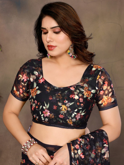 The blouse worn by the model might be for modelling purpose only. Check the image of the blouse piece to understand how the actual blouse piece looks like.