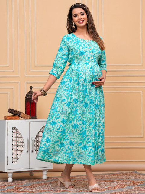 Moda Rapido Floral Printed Round Neck Cotton Maternity Anarkali Kurta