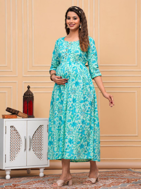 3 reviews for Moda Rapido Floral Printed Round Neck Cotton Maternity Anarkali Kurta