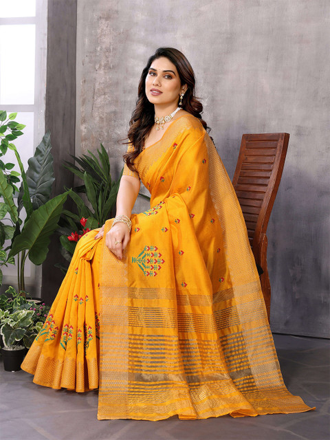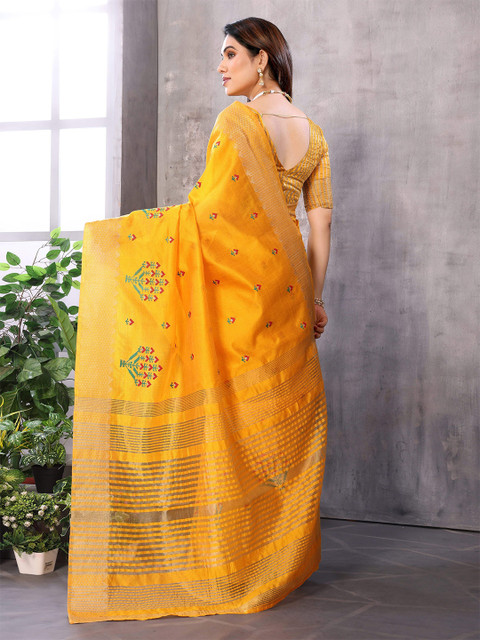 - Gold-toned and mustard kanjeevaram saree