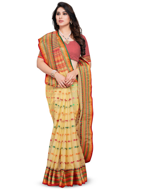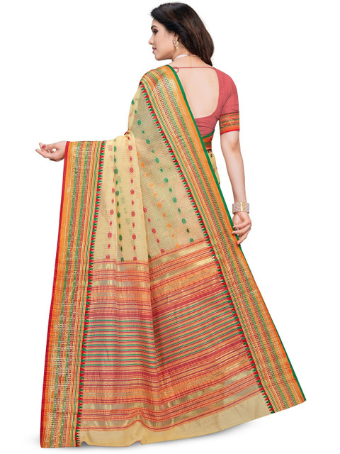 Saree Fabric:: Kota Doria Cotton || Blouse Fabric :: Cotton BlendSaree length: 5.50 meter ; blouse length: 0.80 meterWork : Woven, and Saree Type : Traditional saree
