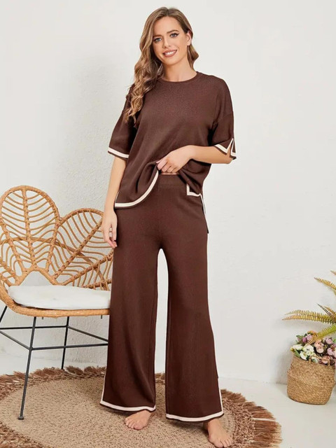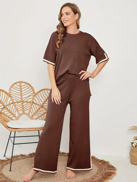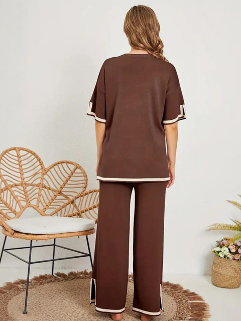 Coffe brown solid trousers, has an elasticated waistband with slip-on closure