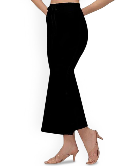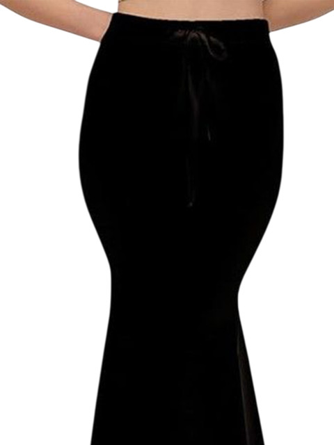 Black solid saree shapewear, has an elasticated waistband with inner drawstring closure, seamless and a side slit