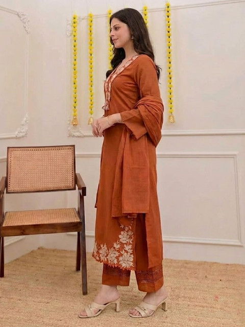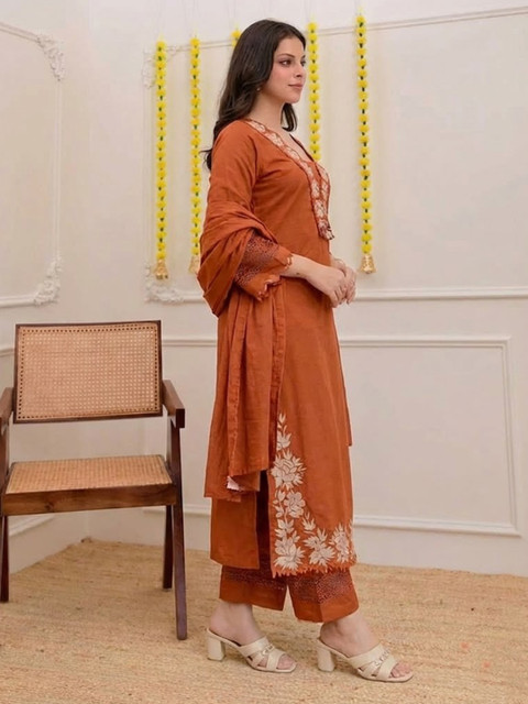 Brown embroidered Kurta with Trousers with dupatta