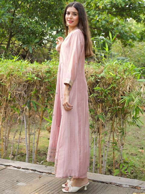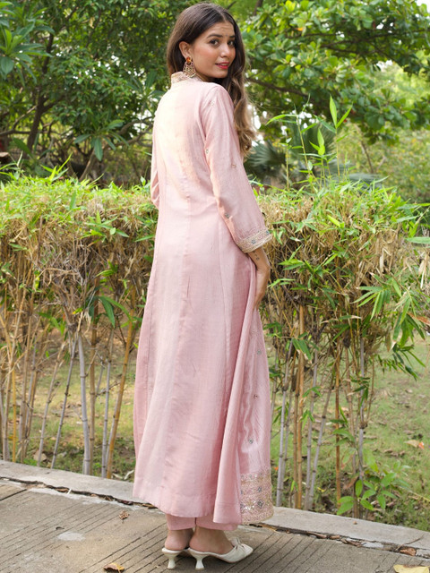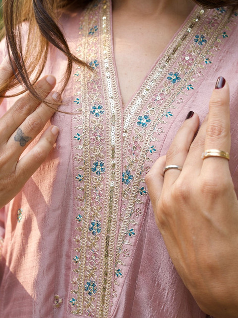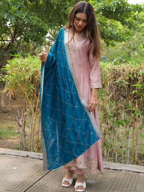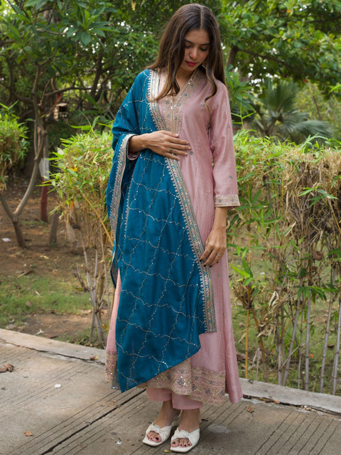 Pink and blue embroidered kurta with trouser and dupatta