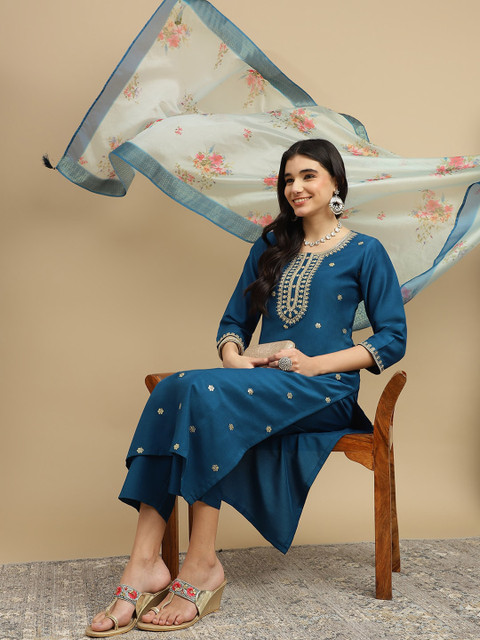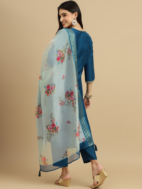 Teal embroidered Kurta with Trousers with dupatta