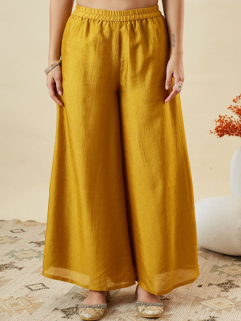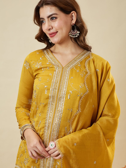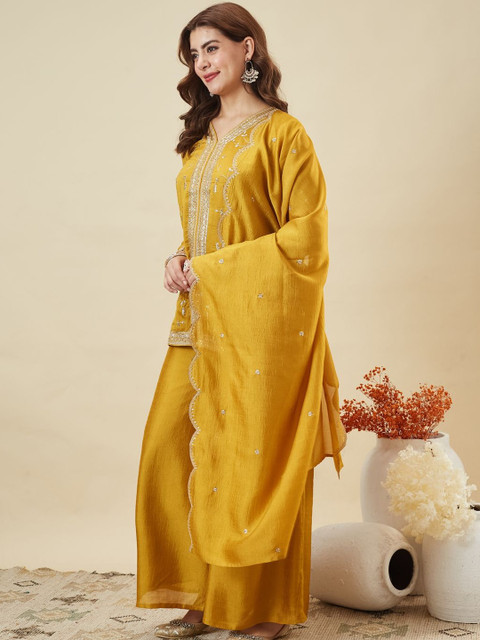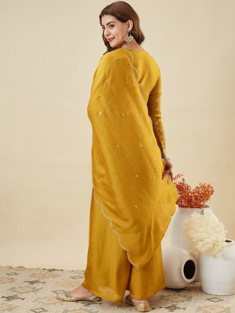 Mustard yellow embroidered Kurta with Palazzos with dupatta