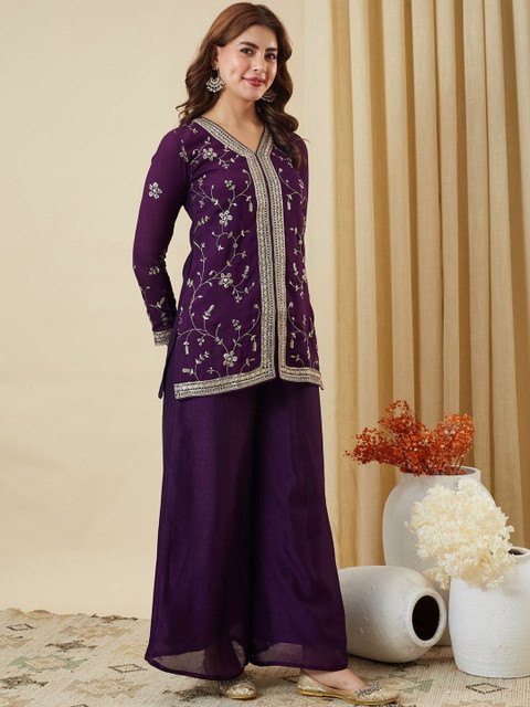 Be the first to review “MOKOSH Women Ethnic Motifs Embroidered Regular Thread Work Art Silk Kurta with Palazzos & With Dupatta”