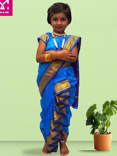 Mom and Me Kids-Girls Blue Sarees