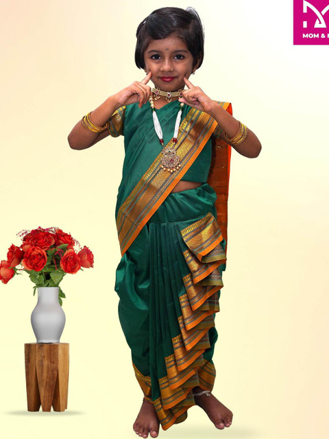 Mom and Me Kids-Girls Green Sarees