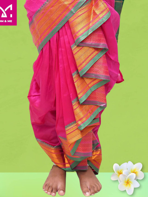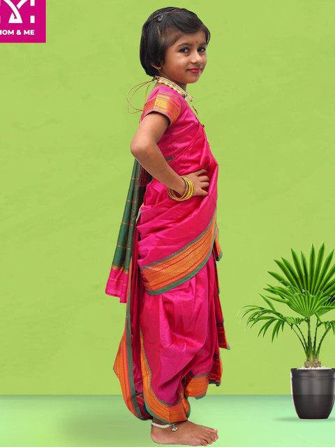 Mom and Me Pure Kids-Girls Pink Pure Cotton Saree