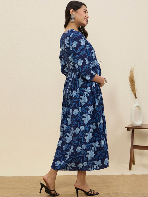 - Blue floral print fit & flare dress