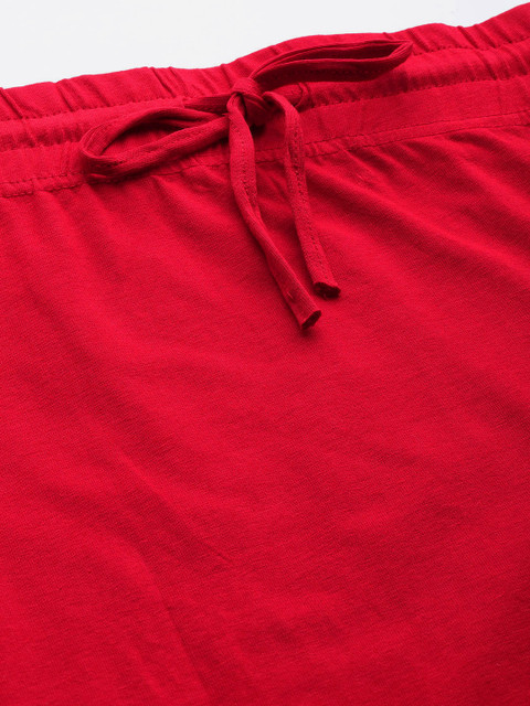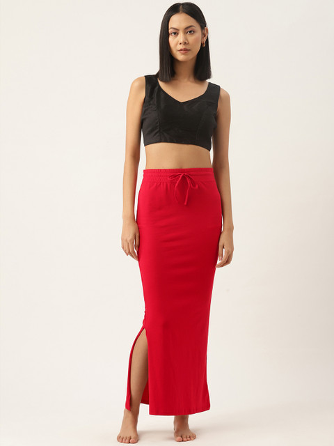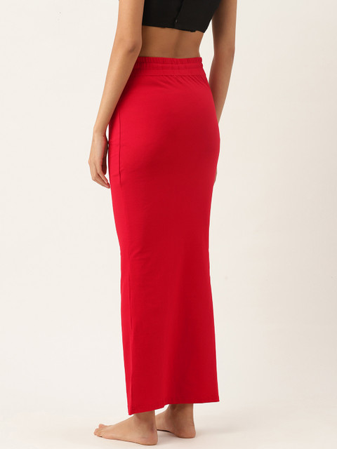 Red solid seamless saree shapewear, has a drawstring closure, a straight hemline, and a side slit