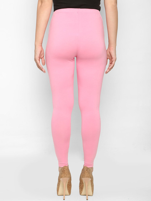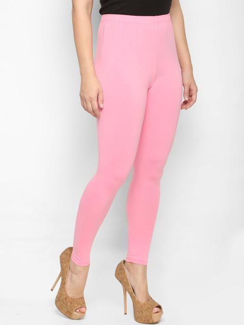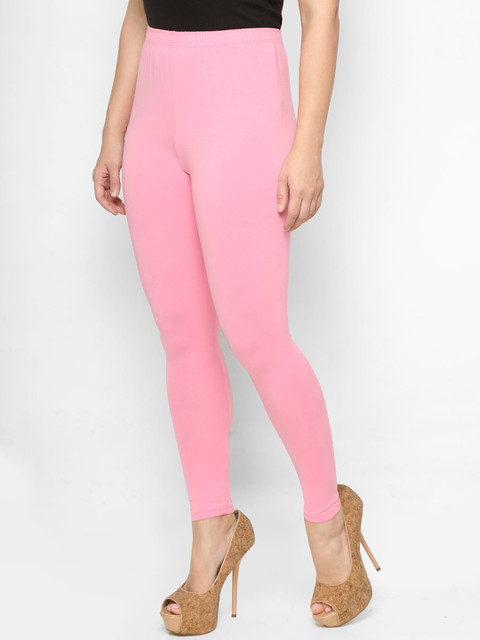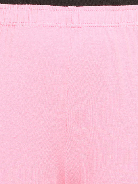 Pink solid ankle-length leggings, has an elasticated waistband and slip-on closure