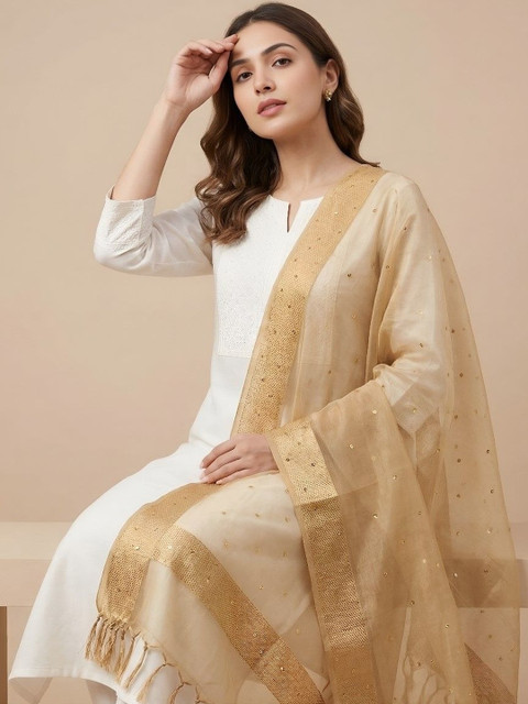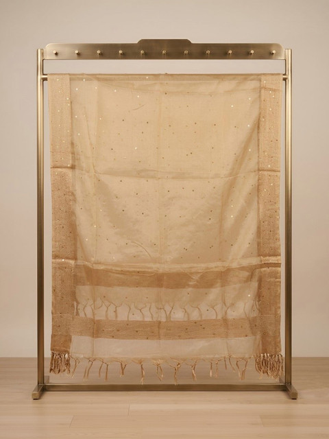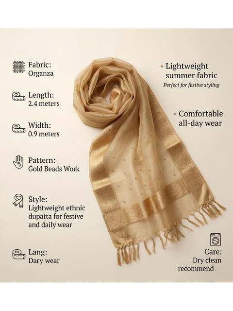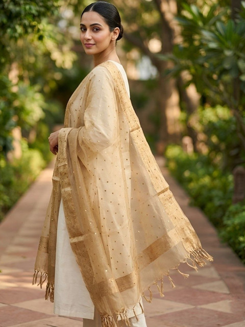 Gold-toned Ethnic Motifs Woven Design dupatta, Tasselled border