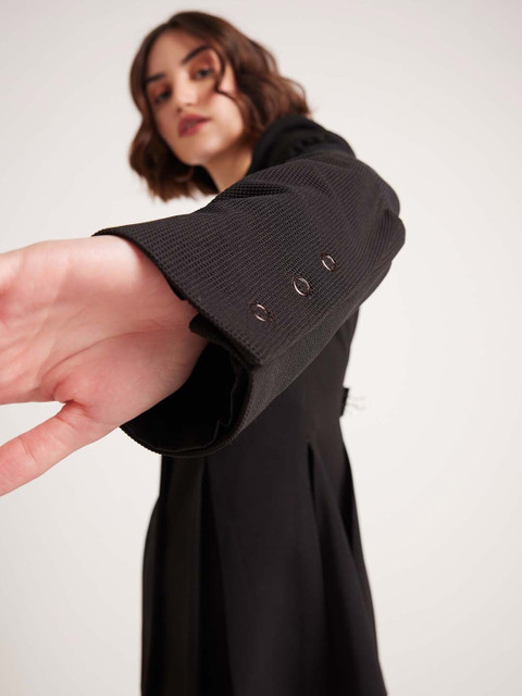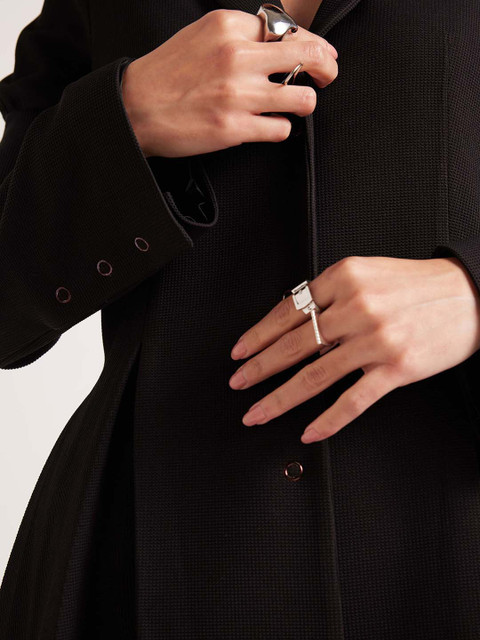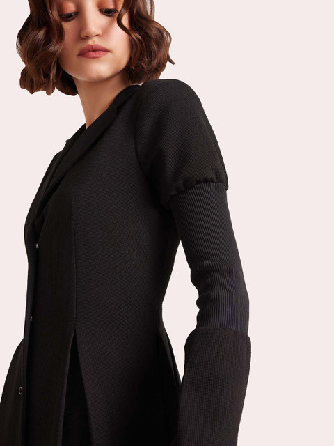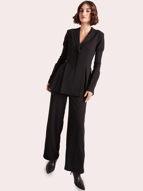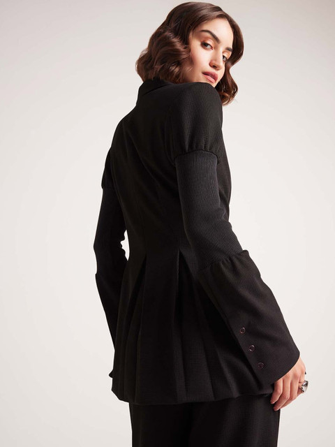 Be the first to review “Muvazo Self Design Single-Breasted Longline Peplum Casual Blazer”