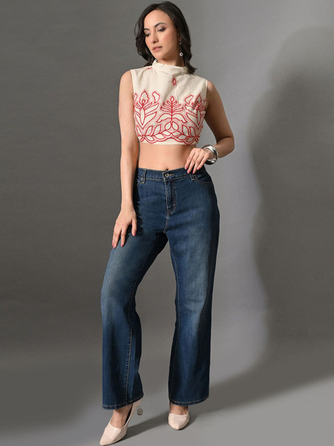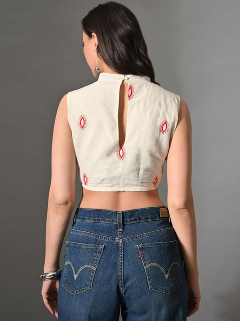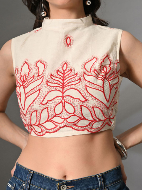 Myshka Embroidered Cotton Halter Neck Saree Blouse